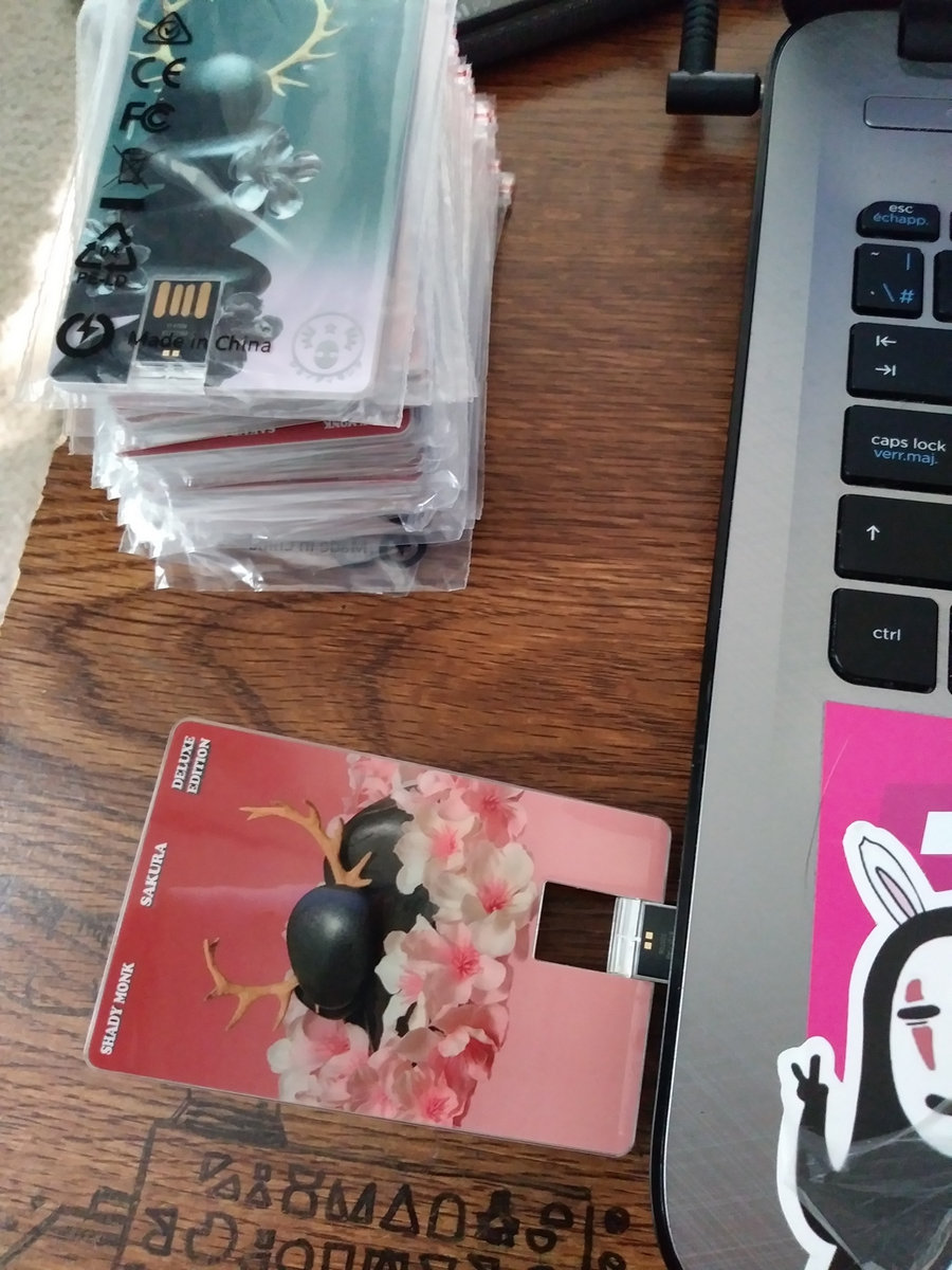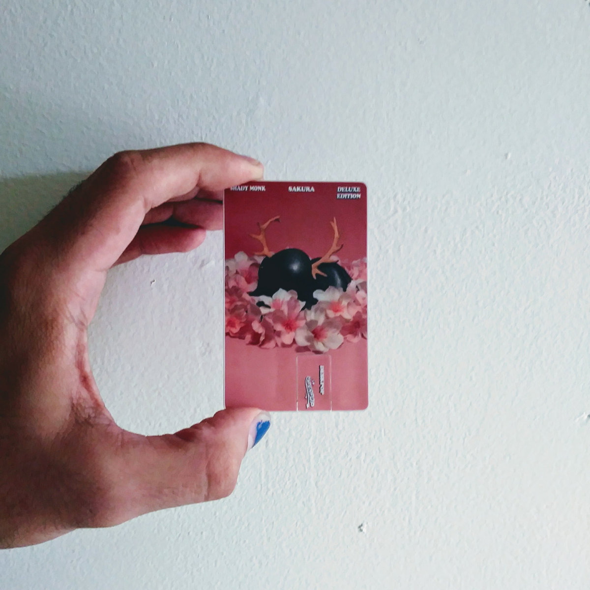 A solid, plastic, credit-card size 2GB USB drive, containing the SAKURA album, all remixes, and some bonus goodies :)